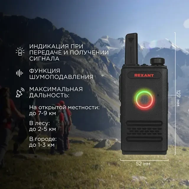 Профессиональная радиостанция REXANT R-1 – это компактное портативное средство связи. Представляет собой полезный прибор для сотрудников магазинов/складов, строителей, туристов и т. д. Позволяет поддерживать стабильную связь находясь на удаленном расстоянии друг от друга и не зависеть от сотовых вышек, роуминга и прочих неудобств мобильной связи. Основные функции: голосовая активация передачи VOX, ограничение времени непрерывной работы на передачу ТОТ, шумоподавитель, применение субтонов CTCSS\DCS 44 CTCSS, 115 DCS, режим сканирования, голосовое оповещение, экономия батареи, предупреждение о низком заряде батареи, блокировка канала, переключатель широкого/узкого диапазона частот. Также в рацию встроен светодиодный фонарь и световой индикатор PTT. Максимальная дальность приема-передачи сигнала на открытой местности (поле, водоем, горы) составляет до 7-9 км, в лесу 2-5 км, в городе 1-3 км.