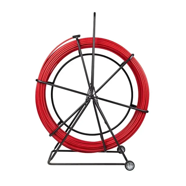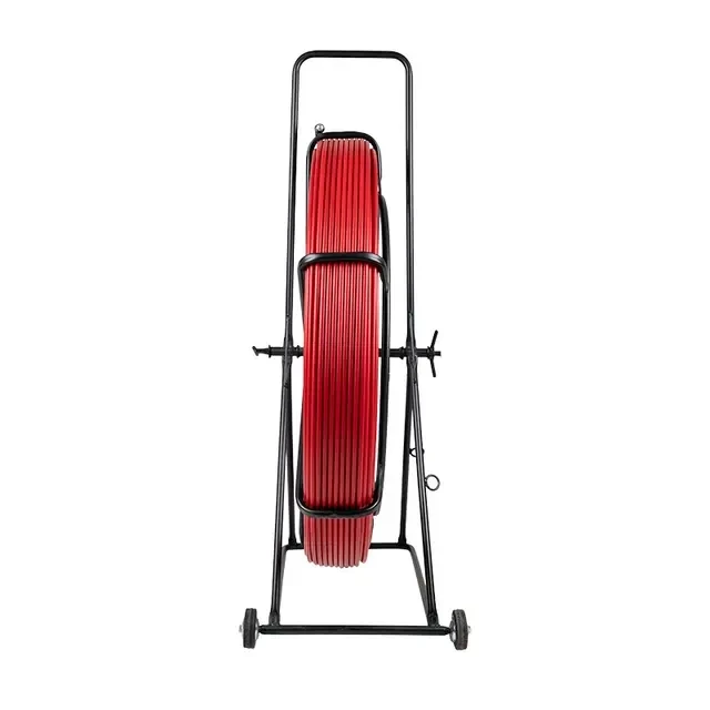 Кабельная протяжка предназначена для прокладки кабелей различных видов в труднодоступных местах: внутри кабельных каналов и лотков, в пустотах стен, потолков и полов, внутри трубы и гофры, а также в подземных кабельных трассах. Протяжка представляет собой стеклопластиковый стержень, который обладает достаточной жесткостью и упругостью для свободного прохождения даже внутри заполненных каналов. Дополнительно стержень покрыт защитной полиэтиленовой оболочкой, которая уменьшает износ прутка и облегчает его протяжку благодаря тому, что снижает трение. Протяжка изготовлена из изоляционных материалов и обеспечивает безопасность работы с кабелем. УЗК размещено на металлическом барабане, который позволяет быстро разматывать и сматывать протяжку. Барабан установлен на металлическую раму для удобного хранения.