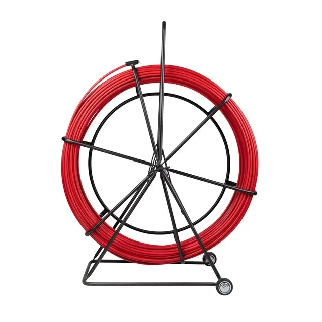 Кабельная протяжка предназначена для прокладки кабелей различных видов в труднодоступных местах: внутри кабельных каналов и лотков, в пустотах стен, потолков и полов, внутри трубы и гофры, а также в подземных кабельных трассах. Протяжка представляет собой стеклопластиковый стержень, который обладает достаточной жесткостью и упругостью для свободного прохождения даже внутри заполненных каналов. Дополнительно стержень покрыт защитной полиэтиленовой оболочкой, которая уменьшает износ прутка и облегчает его протяжку благодаря тому, что снижает трение. Протяжка изготовлена из изоляционных материалов и обеспечивает безопасность работы с кабелем. УЗК размещено на металлическом барабане, который позволяет быстро разматывать и сматывать протяжку. Барабан установлен на металлическую тележку с колесами для удобного хранения и транспортировки.