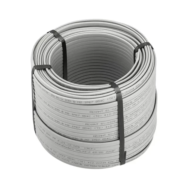 Греющий пищевой кабель REXANT мощностью 24 Вт/м предназначен для защиты от замерзания бытовых трубопроводов среднего диаметра, счетчиков воды, вентилей и т. д. Саморегулирующийся кабель меняет теплоотдачу в зависимости от температуры окружающей среды. Монтаж кабеля осуществляется в рукав под теплоизоляцию на металлические или пластиковые трубы. При установке провод может пересекаться сам с собой. Подключение к сети осуществляется через распаячную коробку. Минимальный радиус изгиба кабеля при монтаже витками составляет 40 мм. Сечение токопроводящих жил: 0,9 мм2. Максимальная длина секции: 70 м. Коэффициент пускового тока: 3,2 при +10°С. Материал токопроводящих жил: луженая медная проволока.