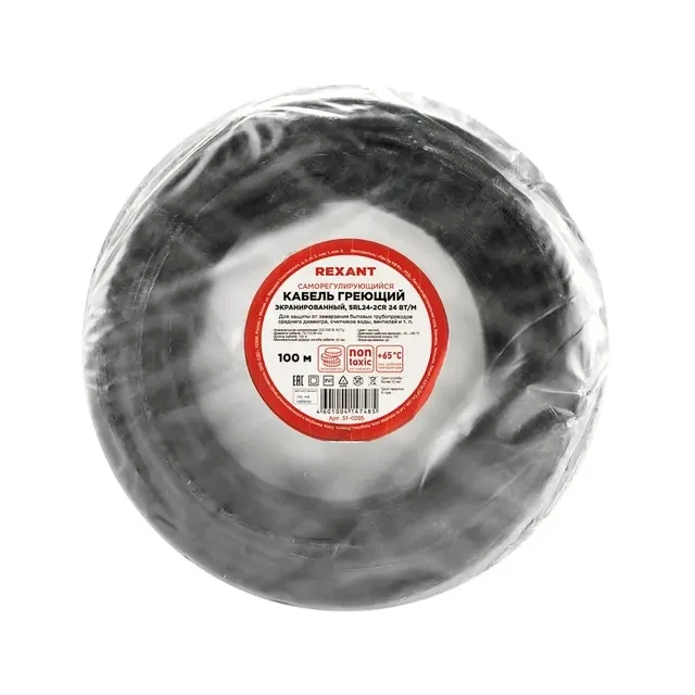 Греющий пищевой кабель REXANT мощностью 24 Вт/м используется для защиты от замерзания бытовых трубопроводов среднего диаметра, счетчиков воды, вентилей и так далее. Является саморегулирующимся, и его теплоотдача зависит от окружающей среды. В нормальных условиях его температура не превышает 65 °С. Благодаря степени защиты IP67 кабель подходит для использования как в помещениях, так и на улице. Изделие дополнительно экранировано, благодаря чему защищено от механических повреждений и неблагоприятных условий. Монтаж осуществляется в рукав под теплоизоляцию на металлические или пластиковые трубы. При установке провод может пересекаться сам с собой. Подключение к сети осуществляется через распаячную коробку. Минимальный радиус изгиба кабеля при монтаже витками составляет 40 мм.