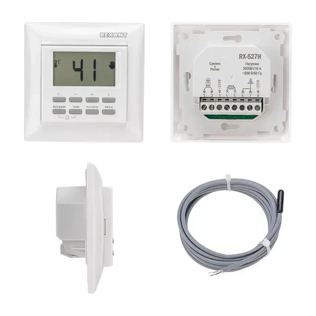 Цифровой терморегулятор REXANT белого цвета предназначен для совместного использования с системами индивидуального электрического отопления: пленочными и кабельными теплыми полами, нагревательными матами, инфракрасными нагревателями и конвекторами без регулятора. Позволяет устанавливать комфортную температуру от +5 до +40 градусов в помещении и поддерживать ее, а также задавать временные интервалы включения и выключения. Возможно планирование до 6 событий в сутки на 7 дней вперед. Такой подход позволяет значительно снизить энергопотребление и затраты на него. Для удобства термостат снабжен кнопками управления, графическим дисплеем с подсветкой, функцией "часы" и "календарь". Точность срабатывания гарантируют сразу 2 термодатчика, которые контролируют температуру воздуха и пола (длина шнура выносного датчика 2,5 м). Терморегулятор совместим с электроустановочными средствами Legrand серии Valena.