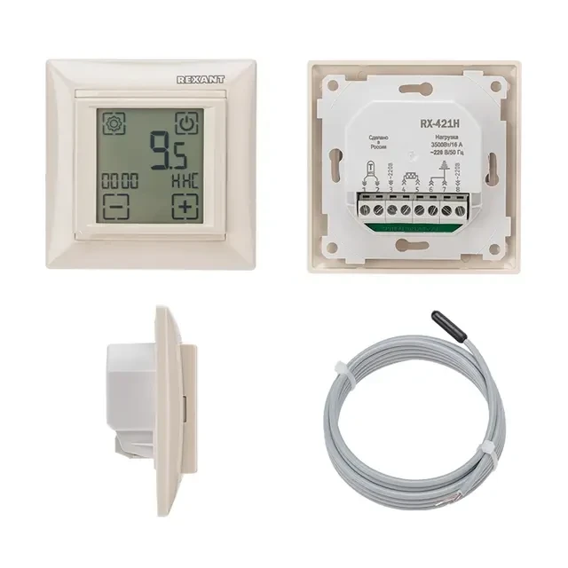 Электронный термостат RX-421H REXANT - это встраиваемое устройство в бежевом корпусе, которое оснащено сенсорным экраном. Предназначено для регулировки температуры в помещении в диапазоне от +15 до +45 °C. Одной из главных особенностей этого термостата является коммутируемый ток контактов, который составляет 16 A. Это позволяет использовать его для управления различными типами обогревателей и кондиционеров, которые потребляют большой объем энергии. Устройство оснащено внешним датчиком температуры, который имеет сопротивление 10 кОм. Этот датчик позволяет устройству более точно определять текущую температуру в помещении и быстрее реагировать на изменения. Отличается простотой использования и высокой функциональностью. Терморегулятор совместим с электроустановочными средствами Legrand серии Valena.