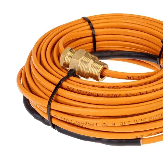Комплект саморегулирующегося кабеля HTM-CT REXANT мощностью 10 Вт/м используется для профилактики замерзания бытовых трубопроводов среднего диаметра, счетчиков воды, вентилей и систем водоотведения. Подходит для установки в трубы с питьевой водой, так как его пищевая оболочка не выделяет токсических веществ. Саморегулирующийся кабель соединен с силовым питающим кабелем, на конце которого находится евровилка для подключения к сети 230 В. Кабель имеет степень защиты IP67 и подходит для использования как в помещениях, так и на улице. При температуре окружающей среды или предметов выше 0 °C максимальная температура нагрева кабеля не превышает 65 °C. Кабель может быть установлен на поверхность как металлической, так и пластиковой трубы под слой теплоизоляции. При монтаже витками необходимо отслеживать минимальный радиус изгиба кабеля – 40 мм. Установка кабеля внутрь трубы с водой осуществляется с помощью комплекта для ввода (поставляется в комплекте). Минимальная температура монтажа кабеля: -5 ℃. Максимальная температура эксплуатации на открытом воздухе: +85 ℃.