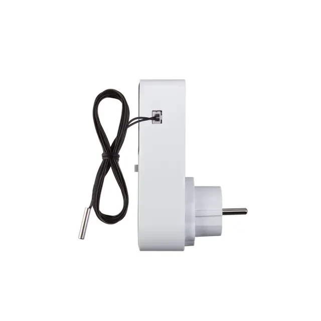 Цифровой терморегулятор в розетку используется для регулирования температуры воздуха в помещении. Устанавливается в жилых домах, теплицах, на рыбных фермах т.д. Может быть интегрирован в систему умного дома. Функции терморегулятора: определение температуры, установка температуры включения и отключения, синхронный цикл включения, отключение и переключение нагрузки во времени. Таймер включения/выключения позволяет запрограммировать работу устройства на срок до 99 минут и 59 секунд, что способствует экономии энергии за счет поддержания заданной температуры в течение определенного времени. Терморегулятор оснащен подсветкой, что позволяет легко считывать данные даже в условиях недостаточного освещения. Длина провода датчика температуры составляет 1,7 м. Диапазон измеряемых температур: от -40℃ до +90℃.