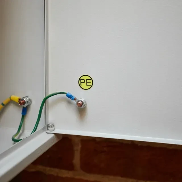 Знак электробезопасности (наклейка) «PE используется для информирования о наличии заземления в электрической сети. Размещается в электрическом щетке, около розеток и выключателей. Наклейка используется для предупреждения и информирования окружающих, а также для организации мест работы электромонтажных бригад. Наносится на ровную сухую поверхность. Знак выполнен из прочного износостойкого материала, благодаря чему устойчив к воздействию прямых солнечных лучей, перепадам температур и мелким механическим воздействиям. Знак хорошо виден на любой поверхности, легко клеится, крепко держится и не оставляет следов после снятия. Комплект набора: 100 наклеек диаметром 2 см (по 20 наклеек на листе).