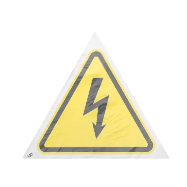 Знак электробезопасности (наклейка) «Опасность поражения электротоком» – это информационный знак, который сообщает об опасности поражения электрическим током. Предназначен для размещения на электрооборудовании, приборах, опорах линий электропередачи, дверцах силовых щитков, электротехнических панелях и шкафах, а также на ограждениях токоведущих частей оборудования, механизмов и приборов. Наклейка используется для предупреждения и информирования окружающих, а также для организации мест работы электромонтажных бригад. Наносится на ровную сухую поверхность. Изделие изготовлено на основе самоклеящейся пленки, разработанной специально для использования на информационных знаках как внутри помещений, так и на улице.
