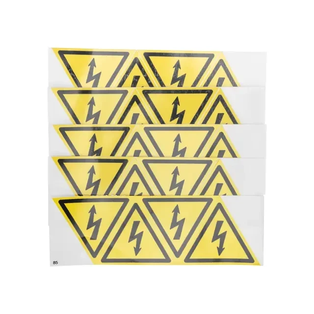 Знак электробезопасности (наклейка) «Опасность поражения электротоком» – это информационный знак, который сообщает об опасности поражения электрическим током. Предназначен для размещения на электрооборудовании, приборах, опорах линий электропередачи, дверцах силовых щитков, электротехнических панелях и шкафах, а также на ограждениях токоведущих частей оборудования, механизмов и приборов. Наклейка используется для предупреждения и информирования окружающих, а также для организации мест работы электромонтажных бригад. Наносится на ровную сухую поверхность. Изделие изготовлено на основе самоклеящейся пленки, разработанной специально для использования на информационных знаках как внутри помещений, так и на улице. Комплект набора: наклейки размером 85х85х85 мм (по 4 наклейки на 1 листе).