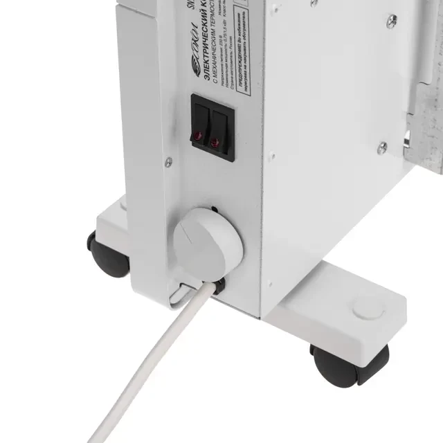 Электрический конвектор представляет собой устройство, предназначенное для отопления помещений. Используется для основного и дополнительного обогрева квартир, офисов, дачных домиков, небольших торговых площадей и т.д. Работа устройства основана на принципе естественной конвекции, при которой теплый воздух поднимается вверх, вытесняя холодный. Изделие оснащено механическим термостатом, который позволяет регулировать температуру. Конвектор белого цвета выполнен в строгом и эргономичном дизайне. Материал изготовления – металл. Конвектор удобен в использовании благодаря наличию роликов, которые обеспечивают легкую мобильность устройства. Обогреватель также может быть установлен на стену. Устройство оснащено такими функциями, как регулировка температуры, ручное управление температурой и защита от перегрева. Вес, брутто, не более: 6,9 кг. Габариты в упаковке: 735х410х115 мм.