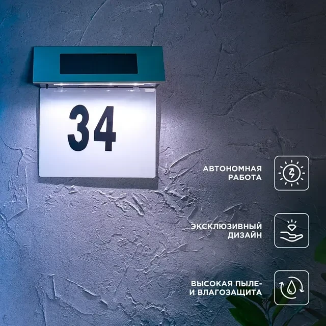 Светильник Риджент – это стильное и функциональное решение для обозначения номера вашего дома. В комплекте поставляется набор самоклеящихся цифр, которые легко приклеиваются на специальную панель светильника. Цифры обладают стойкостью к истиранию, влаге и воздействию внешних факторов. Благодаря этому изделию номер дома хорошо виден не только днем, но и ночью, что особенно важно для гостей, курьеров, служб доставки и т.д. Дизайн светильника вдохновлен великолепной архитектурой Лондона – города, известного своей элегантностью и историческим наследием. Простые линии и изысканные детали подчеркивают его уникальный характер, передающий антураж британской столицы. Изделие оснащено солнечной панелью, которая поглощает солнечные лучи в течение дня и преобразует их в электрическую энергию. Накопленная энергия хранится во встроенном аккумуляторе, что позволяет светильнику автономно функционировать около 6-8 часов.