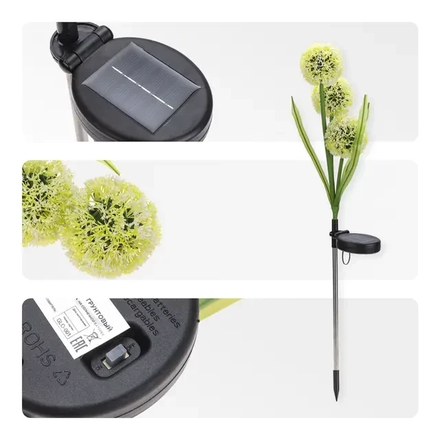 Грунтовый светильник Одуванчик – это изысканный элемент садового декора, предназначенный для подсветки пешеходных дорожек, тропинок, цветников, а также различных архитектурных деталей ландшафта. Дизайн светильника вдохновлен нежной гармонией природных форм. Светильник выполнен в виде пушистого одуванчика, распускающегося весной и летом. Светильник оснащен солнечной панелью, которая поглощает солнечные лучи в течение дня и преобразует их в электрическую энергию. Накопленная энергия хранится во встроенном аккумуляторе, что позволяет светильнику автономно функционировать около 6-8 часов и освещать окружающую территорию вечером и ночью, не требуя подключения к электросети. Вечерние прогулки в саду, уютные посиделки под звездами и романтические ужины наполнятся волшебством благодаря этому особенному светильнику.
