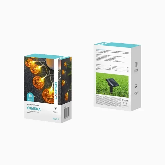 Садовая гирлянда (каскад) Хранитель жемчужины LAMPER - это оптимальное решение для украшения территории загородного дома, дачи или декорирования пространства перед торжеством. Изделие оснащено солнечной панелью и аккумулятором: заряжается днем в течение 6 часов, а с наступлением темноты дарит приятное теплое белое свечение на протяжении 6 часов. Устройство не требует прокладки проводов и дополнительных элементов установки. 10 пластиковых улыбающихся тыкв расположены на шнуре длиной 3 м. Так, гирлянда легко крепится в любом месте. При этом панель незаметно размещается по соседству. Ее можно положить на плоскую поверхность или вставить в грунт (в комплекте идет прочный пластиковый колышек). Каскад имеет высокий уровень пыле- и влагозащиты IP65, поэтому может использоваться в непогоду без навеса.