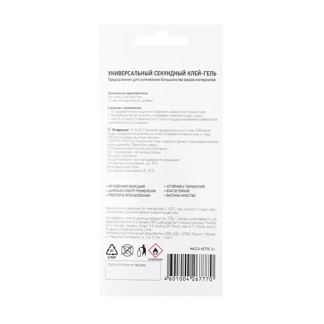 Универсальный секундный клей-гель для любых материалов — кожа, пластмасса, металл, фарфор, керамика, дерево и т. д. Достаточно всего 5 секунд и клей высыхает!