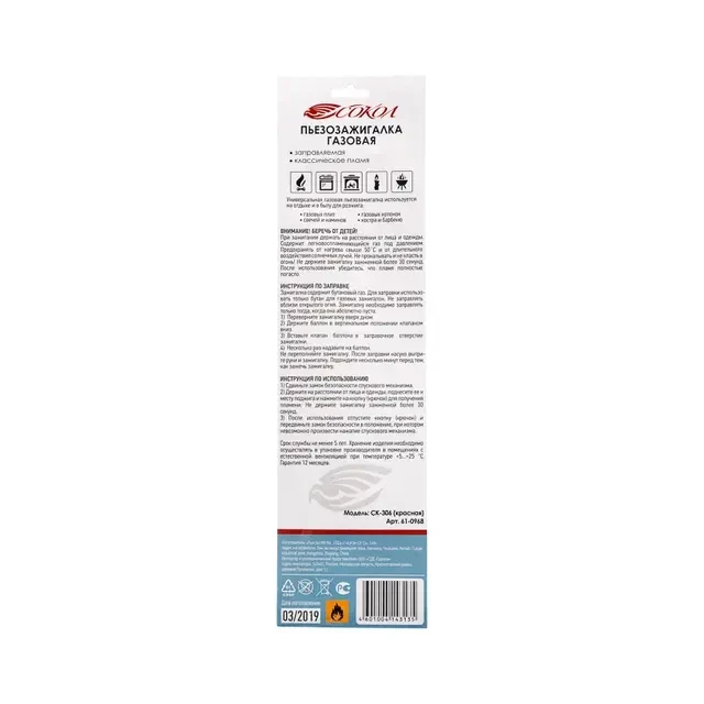 СОКОЛ 61-0968 - Купить Бытовая газовая пьезозажигалка