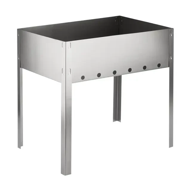 Походный компактный разборный мангал СОКОЛ изготовлен из стали, не подвергается тепловым деформациям от углей и дров. Предназначен для многоразового использования. Сборка и установка мангала производится вручную без использования специальных инструментов. На стенках жаровни предусмотрены специальные отверстия для интенсивного горения. Общая высота ножек 350 мм оптимальна и удобна для приготовления шашлыков. Размеры жаровни 350х250 мм позволяют разместить шампуры и получить порцию блюда, рассчитанную на небольшую компанию. Толщина стенки – 0,4 мм. В разобранном виде мангал не занимает много места и легко помещается в багажник автомобиля. В комплекте предусмотрены 6 угловых шампуров размером 370х10х0,6 мм. Изделие поставляется в гофрированной коробке из плотного картона. Размеры мангала (ДхШхВ): 350х250х350 мм.