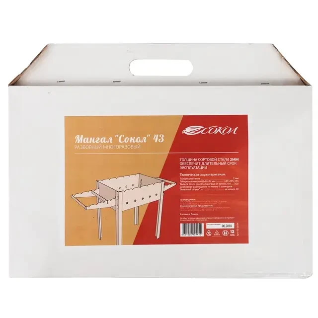 Компактный разборный мангал СОКОЛ изготовлен из стали увеличенной толщины (2 мм), поэтому не подвергается тепловым деформациям от углей и дров. Сборка и установка мангала производится вручную без использования специальных инструментов. На стенках жаровни размещены специальные прорези, которые позволяют разместить до 6 шампуров. Дополнительные держатели обеспечивают место для установки еще 8 шампуров. На боковых стенках предусмотрены отверстия для интенсивного горения. Общая высота ножек 505 мм оптимальна и удобна для приготовления шашлыков. Жаровня размером 910х295 мм и глубиной 155 мм позволяет разместить шампуры и получить порцию блюда, рассчитанную на небольшую компанию. В разобранном виде мангал не занимает много места и легко помещается в багажник автомобиля. Поставляется в картонной коробке, дополненной удобной ручкой для транспортировки. Масса: 9,1 кг. Объем полезный, не менее: 20 л.
