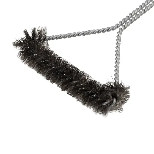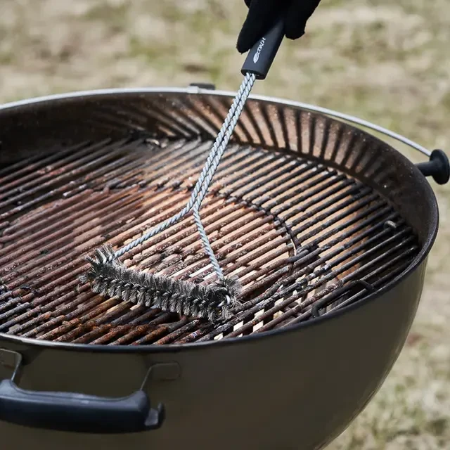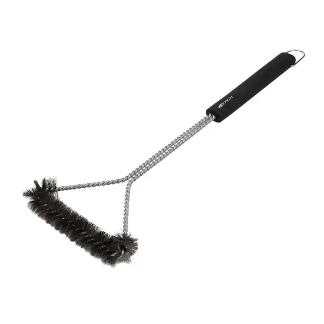 Щетка для грилей серии Комфорт длиной 43 см предназначена для очищения грилей, мангалов и решеток из нержавеющей стали, чугуна, хрома или фарфоровой эмали. Длинная рукоятка из экологически чистой термопластичной резины не выскальзывает из рук. Жесткая металлическая щетина эффективно удаляет остатки пригоревшей пищи и другие сильные загрязнения. Способна вычищать мелкий сор и грязь даже из труднодоступных мест. Аксессуар выполнен из прочной и экологичной нержавеющей стали, благодаря чему выдерживает большие перепады температур, устойчив к коррозии. Размер изделия: 430х170 мм.