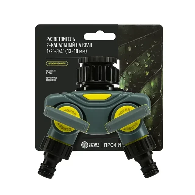 Разветвитель 2-канальный на кран 1/2"-3/4" Профи ЧЕТЫРЕ СЕЗОНА