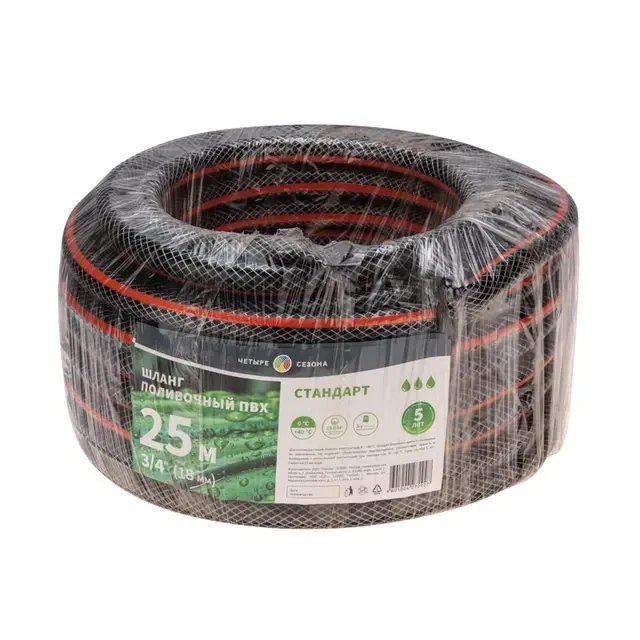 Шланг предназначен для полива растений и почвы на садово-огородных участках. Изготовлен из трехслойного высококачественного ПВХ, благодаря чему обладает высокой прочностью и устойчивостью к образованию изломов. Отличается гибкостью и не перекручивается при эксплуатации. Не токсичен. Диаметр шланга – 18 мм 3/4", длина – 25 м. Максимальное давление составляет 15 Атм. Диапазон рабочих температур варьируется от 0 до +40 С.