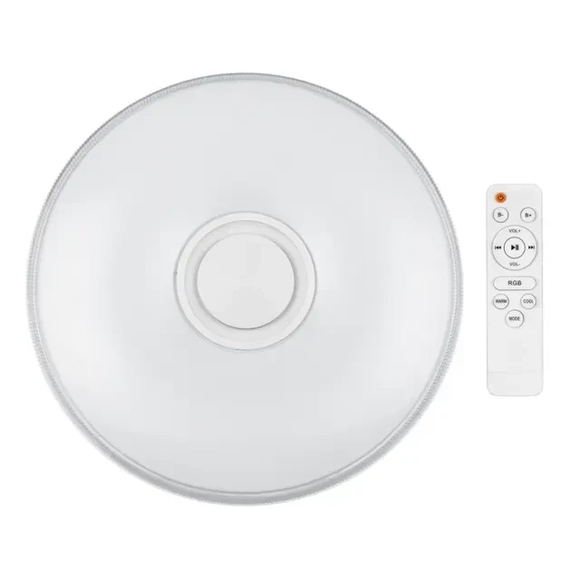 Настенно-потолочный светодиодный светильник REXANT Fobos Melody с изменяемой цветовой температурой предназначен для установки в жилых помещениях. Он отлично впишется в интерьер кухни, зала и прихожей. Полностью управляется с телефона и планшета по Bluetooth каналу. Встроенный динамик позволяет устроить вечеринку и праздничную атмосферу за мгновения! Светильник REXANT Fobos Discoteca позволяет выбрать цвет основного освещения в диапазоне 2700К-6500 К, а также диммировать световой поток, выбрать сценарии для RGB и основного света. Благодаря накладному монтажу, светильник подходит для всех типов потолков. Оживите атмосферу дома одним кликом! Тип источника света: LED Световой поток: 80-90 Лм / Вт Номинальная мощность светильника: 65 Вт + RGB 5 Вт Диммируемый: да (через пульт ДУ и Bluetooth) Цветовая температура: 2700-6500 К, RGB Переменный/постоянный ток (AC/DC): AC Номинальное напряжение: 230 В Номинальная частота: 50 Гц Материал рассеивателя: светопропускающий пластик Индекс цветопередачи (CRI): >80 Коэффициент пульсации: <5% Коэффициент мощности: 0,5 Встроенный динамик: да Тип крепления: настенный, потолочный Тип пульта дистанционного управления: 2.4G Приложение: Securic Smart Life Динамик: bluetooth-колонка Класс защиты от поражения током: I Температурный режим: +1...+40 °С Класс энергоэффективности: A Степень защиты: IP 20 Размеры, мм (ДхШхВ): 500х500х70
