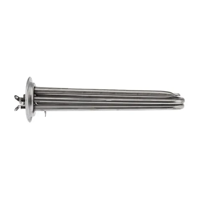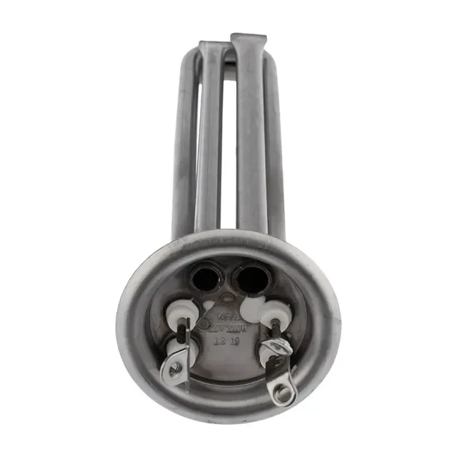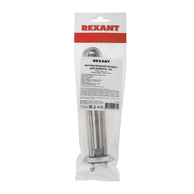 ТЭН REXANT предназначен для вертикальных бойлеров Electrolux EWH. Он удобен в монтаже и прост в работе. Выполнен из высококачественных прочных материалов. Технические характеристики: Фланец: диаметр 64 мм Отверстие под анод: М4 Контакты под винт Длина нагревательного элемента: 205 мм 2 трубки под термостат и термозащиту Мощность: 2,0 кВт 2 нагревательных элемента по 1000 Вт Материал: нержавеющая сталь