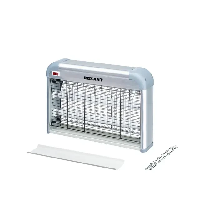 Антимоскитная инсектицидная лампа REXANT является современным экологически безопасным средством по борьбе с комарами, москитами, мошками, мотыльками и другими летающими видами насекомых. Предназначена для использования внутри помещений. Устройство излучает ультрафиолет и нагревается, привлекая насекомых. Подлетая, москиты получают смертельный удар током от металлической сетки под напряжением. Площадь действия составляет 80 м кв. К устройству подходит лампа арт. 71-0146.