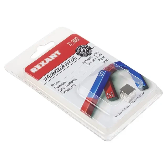 Неодимовый магнит прямоугольник 10х10х1мм, сцепление 0,6кг (10 шт/уп) REXANT