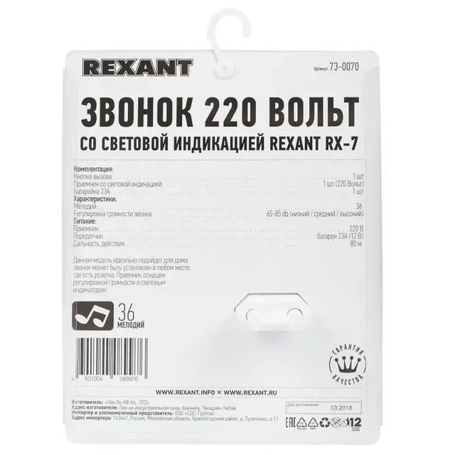 Описание REXANT 73-0070 - Купить Беспроводной дверной звонок