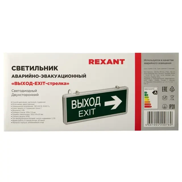 Описание REXANT 74-1307 - Купить Светильник аварийно-эвакуационный «ВЫХОД-EXIT»