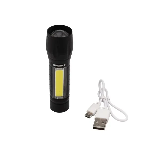 Универсальный фонарь REXANT с мощным основным и боковым светом предназначен для походов, для ремонтных мастерских, а также в качестве рабочего фонаря под различные работы. Отлично подходит для использования на привале и на даче. 3 режима свечения: основной свет, боковой свет, а также пульсирующий. Прочный алюминиевый противоударный корпус защитит фонарь от повреждений при случайном падении. В комплект поставки входит USB кабель, который позволяет осуществлять зарядку от любого порта USB 5 В DC в автомобиле, либо через блок питания от сети 220 В. Внимание! Не включайте фонарь во время зарядки.