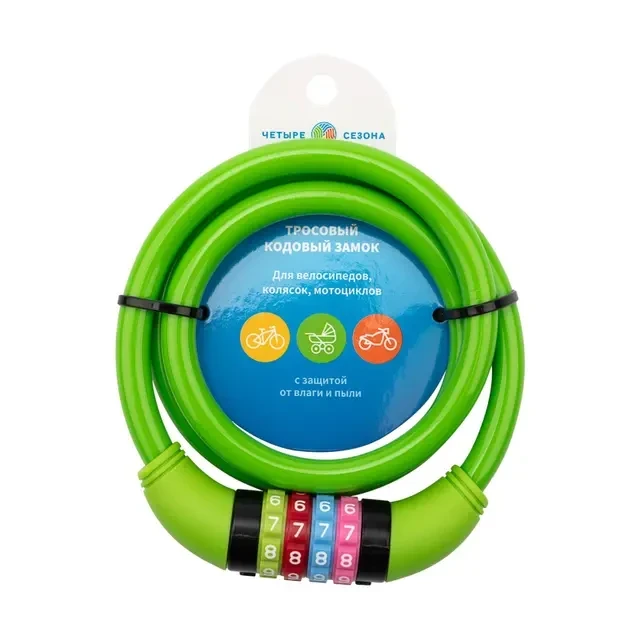 Замок тросовый кодовый взломостойкий для велосипедов и колясок 100см зеленый ЧЕТЫРЕ СЕЗОНА