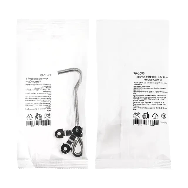 Ветровой крючок 120 мм используется для запирания дверей или окон складских и подсобных помещений. Представляет собой простое и надежное средство для фиксирования створок двери или легкой калитки. Как правило, выполняет не защитную, а просто запорную функцию. Крючок изготовлен из оцинкованной стали: исключено появление коррозии (ржавчины). Благодаря этому Вы можете использовать его в помещениях с повышенной влажностью или на улице. Состоит из трех частей: крючка и двух накладок.
