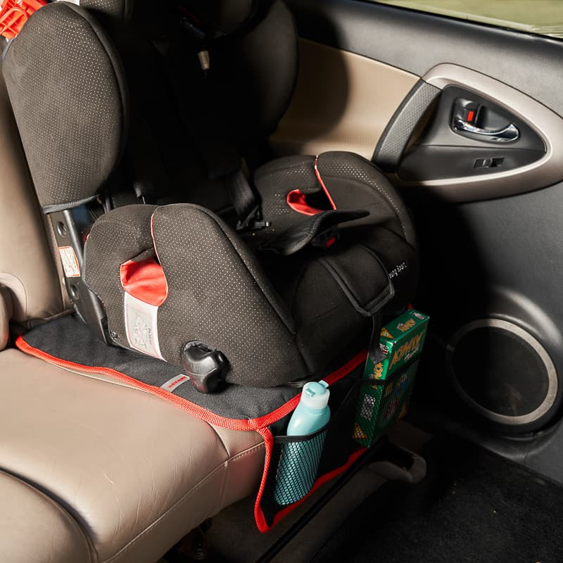 Накидка предназначена для размещения под детским автокреслом. Используется для защиты заднего сидения от повреждений и служит барьером между детскими ножками и сиденьем, предотвращая появление царапин или загрязнений на его поверхности. Накидка изготовлена из прочного и легко моющегося полиэстера. Внутри накидки находится подложка из вспененного полиэтилена, которая защищает тканевую или кожаную обивку сидений от деформации (замятия) и различного рода загрязнений. Накидка имеет универсальное крепление – липучку, благодаря чему легко крепится к сиденью. В передней части накидки расположены карманы для мелких предметов и различных мелочей, которые могут понадобиться во время поездки. Вы сможете разместить в них игрушки, бутылочку с водой, салфетки или другие предметы.