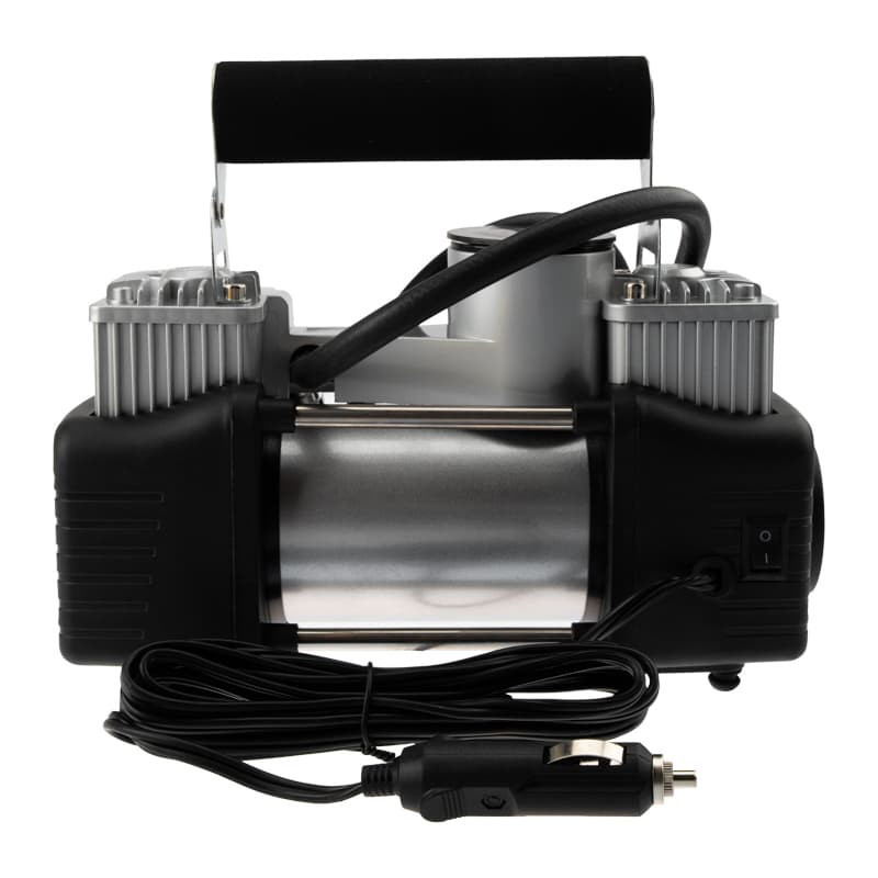 Усиленный металлический автомобильный компрессор используется для накачивания шин легковых автомобилей, кроссоверов, внедорожников и малого коммерческого транспорта. Питание осуществляется от АКБ автомобиля. Компрессор обладает высокой производительностью 75 л/мин. Оснащен мощным электрическим двухпоршневым двигателем и системой повышенной безопасности. Предусмотрена защита от перегрева. Устройство рассчитано на длительную эксплуатацию в суровых климатических условиях. Может быть использовано для больших колес. В комплекте поставляются переходники для накачивания мячей, матрасов, резиновых лодок. Комплектация: компрессор автомобильный - 1 шт., пневмошланг - 1 шт., сумка для хранения - 1шт., упаковка - 1 шт., паспорт изделия - 1 шт., насадки - 3 шт.