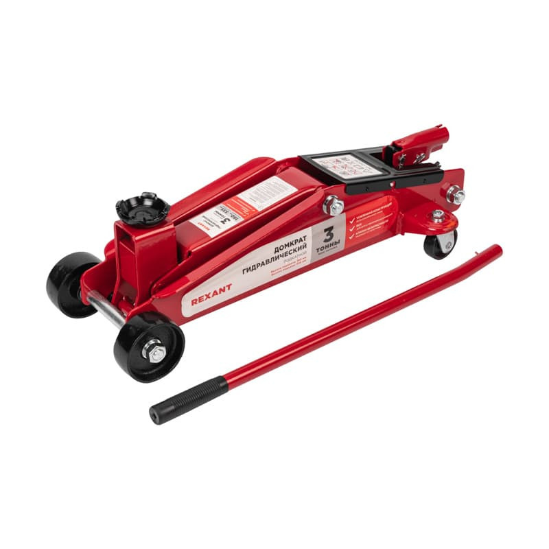 Гидравлический подкатной домкрат REXANT представляет собой устройство с гидравлическим механизмом, предназначенное для поднятия автомобиля на заданную высоту. Отличается плавностью хода, надежностью и жесткостью конструкции. За счет высокого подхвата используется для автомобилей с увеличенным дорожным просветом. Данный вид домкрата подходит для самостоятельного обслуживания автомобиля. Клапан безопасности предотвращает подъем груза тяжелее 3 т, предохраняя домкрат от поломки. Максимальная нагрузка – 3 т. Высота подхвата – 190 мм. Высота подъема – 535 мм.