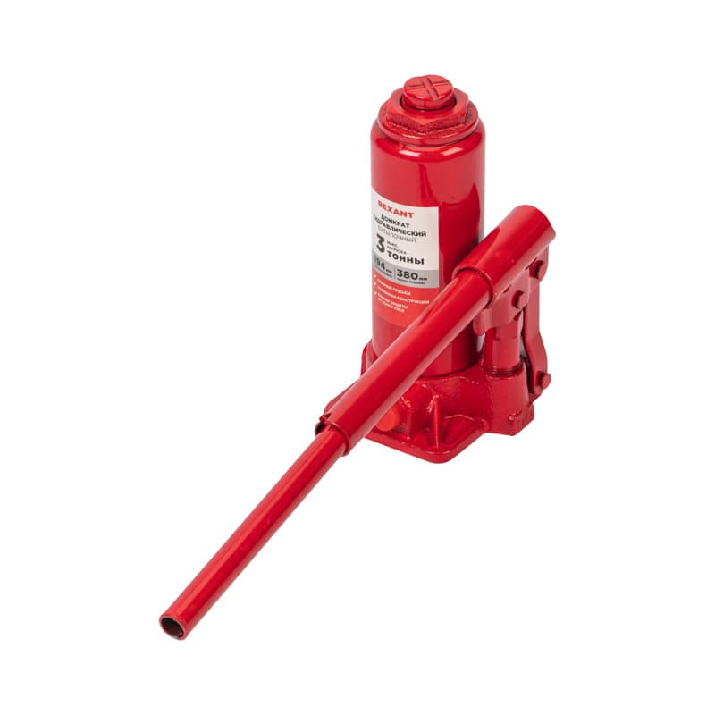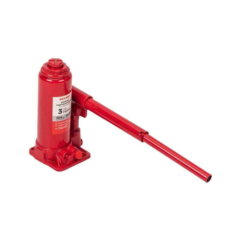 Гидравлический бутылочный домкрат REXANT предназначен для поднятия грузов массой до 3 тонн на высоту до 380 мм. Оптимален для автомобилей с большим клиренсом. Оснащен гидравлической системой, обеспечивающей высокую мощность и надежность. Домкрат станет незаменимым помощником как для автолюбителей при проведении технического обслуживания и ремонта. Отличается плавностью хода, надежностью и жесткостью конструкции. Клапан безопасности предотвращает подъем груза тяжелее 3 т, предохраняя домкрат от поломки. Максимальная нагрузка – 3 т. Высота подхвата – 194 мм. Высота подъема – 380 мм. Материал корпуса – сталь, чугун.