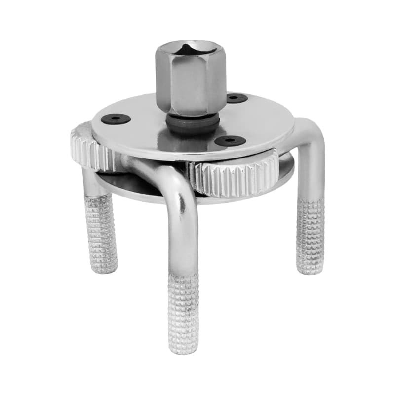 Универсальный съемник Краб с прямыми захватами предназначен для смены масляного фильтра в автомобильном транспорте при прохождении очередного технического обслуживания. Самозажимная конструкция с глубокими и четко выгравированными нескользящими шестернями обеспечивает надежное удержание фильтра. Накатка на ножах увеличивает силу захвата на масляном фильтре. Съемник оснащен дополнительным переходником, который позволяет использовать различные приводы размером 3/8"DR или 1/2"DR, а также гаечный ключ или торцевую головку размером 21 мм. Благодаря широкому рабочему диапазону зажима (65-110 мм) возможна замена масляного фильтра на большинстве производимых автомобилей.