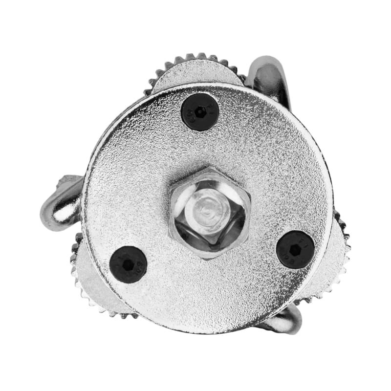 Универсальный съемник Краб с изогнутыми захватами предназначен для смены масляного фильтра в автомобильном транспорте при прохождении очередного технического обслуживания. Самозажимная конструкция с глубокими и четко выгравированными нескользящими шестернями обеспечивает надежное удержание фильтра. Накатка на ножах увеличивает силу захвата на масляном фильтре. Съемник оснащен дополнительным переходником, который позволяет использовать различные приводы размером 3/8"DR или 1/2"DR, а также гаечный ключ или торцевую головку размером 21 мм. Благодаря широкому рабочему диапазону зажима (43-102 мм) возможна замена масляного фильтра на большинстве производимых автомобилей.