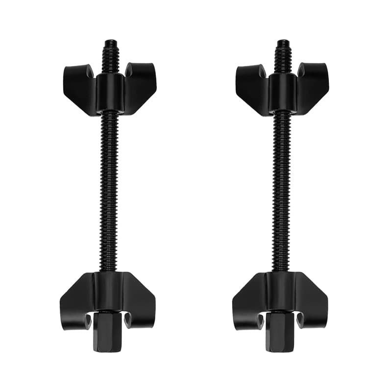 Комплект состоит из двух прочных стяжек, которые применяется для сжатия пружин подвески при ремонте и обслуживании автомобильных транспортных средств. Предусмотрены кованные двойные захваты, которые обеспечивают надежную фиксацию пружины. Стяжки оснащены присоединительным квадратом 1/2" и внешним шестигранником размером 22 мм под гаечный ключ или торцевую головку.
