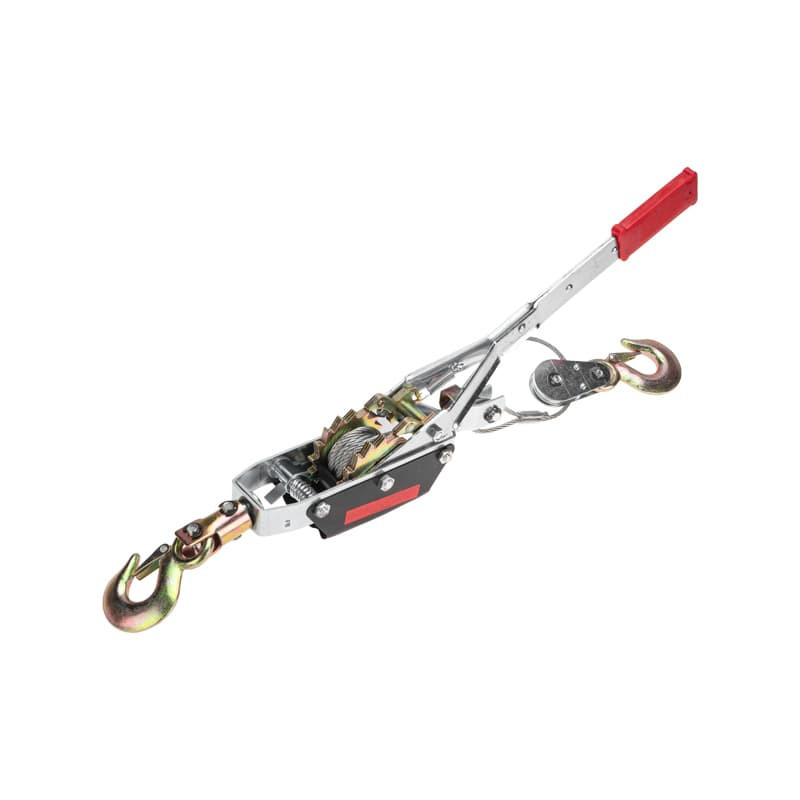 Ручная лебедка предназначена для подъема и перемещения грузов при выполнении монтажных и демонтажных работ в строительстве или в быту. Широко применяется для буксировки застрявших автомобилей. Удобна для натягивания различных тросов и проводов. Благодаря рычажному механизму проста в использовании и не требует больших усилий от оператора. Лебедка с двойным храповым механизмом полностью автономна и может использоваться в любом пространственном положении без стационарного закрепления на месте. Изделие оснащено двумя крюками и стальным тросом высокой прочности. Тяга – 4 т, подъем – 1,6 т.