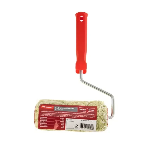 Малярный валик серии «Мастер» REXANT имеет меховое покрытие и применяется при производстве малярных работ в строительстве, предназначен для окраски поверхностей лакокрасочным составом. Валик состоит из пластмассового цилиндра, мягкой шубки, бугеля (изогнутого металлического стержня) и удобной пластиковой рукоятки. ОСНОВНЫЕ ПРЕИМУЩЕСТВА: 1) Шубка валика – универсальная ткань, которая подходит для всех видов ЛКМ, особенно для акриловых и алкидных эмалей. 2) Длинный ворс шубки позволяет качественно прокрасить рельефные поверхности. 3) Усиленная ручка изделия обеспечивает долгий срок службы валика. 4) Валик изготовлен по технологии Thermofusion (заводское нанесение ткани на расплавленное основание). ТЕХНИЧЕСКИЕ ХАРАКТЕРИСТИКИ: Материал ролика: пластмасса Ширина ролика: 180 мм Диаметр ролика: 42 мм Материал шубки: полиакрил Цвет шубки: зеленый Длина ворса: 18 мм Материал бюгеля: металл Диаметр бюгеля: 8 мм Материал рукоятки: пластик Малярный инструмент REXANT сделает работу по строительству и ремонту быстрой и качественной. Вы с легкостью справитесь с поставленной задачей, а результат будет радовать вас долгие годы!