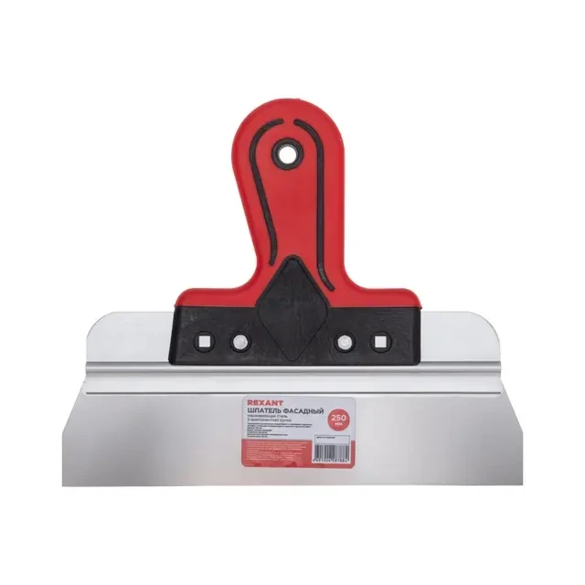 Фасадный шпатель используется для проведения работ по оштукатуриванию и облицовке фасадных поверхностей. Предназначен для нанесения, выравнивания и сглаживания отделочных составов, а также для проведения других ремонтно-отделочных работ. Шпатель изготовлен из нержавеющей высоконагартованной стали толщиной 0,5 мм, 1500н/мм, что обеспечивает износостойкость, долгий срок службы и высокую устойчивость к коррозии. Инструмент оснащен алюминиевым ребром жесткости, которое предотвращает искривление полотна. Эргономичная двухкомпонентная ручка обеспечивает надежный захват инструмента.