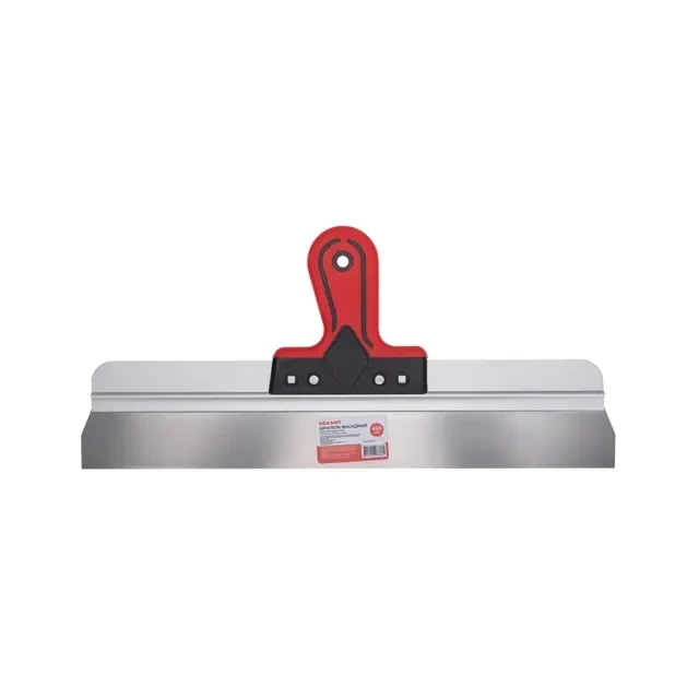 Фасадный шпатель используется для проведения работ по оштукатуриванию и облицовке фасадных поверхностей. Предназначен для нанесения, выравнивания и сглаживания отделочных составов, а также для проведения других ремонтно-отделочных работ. Шпатель изготовлен из нержавеющей высоконагартованной стали толщиной 0,5 мм, 1500н/мм, что обеспечивает износостойкость, долгий срок службы и высокую устойчивость к коррозии. Инструмент оснащен алюминиевым ребром жесткости, которое предотвращает искривление полотна. Эргономичная двухкомпонентная ручка обеспечивает надежный захват инструмента.