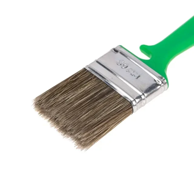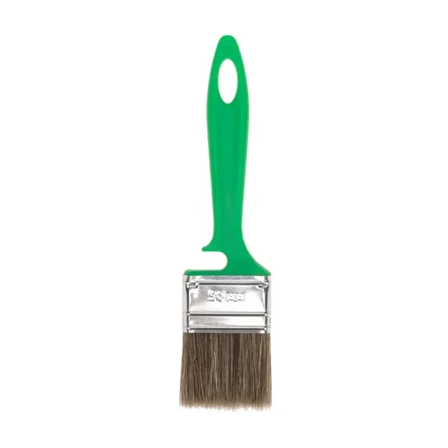 Кисть «Работы по дереву» отлично работает по шероховатым поверхностям, обладает износостойкой смешанной щетиной, отлично покрывающей дерево пропитками, глазурями и краской. Может применяться с эмалями и для проведения фасадных работ. Эргономичная пластиковая ручка кисти удобна в применении. Средний размер кисти позволяет равномерно прокрасить небольшие плоские поверхности и плинтусы. Технические характеристики: Тип: кисть плоская Размер кисти: 50х12 мм Длина щетины: 51 мм Длина ручки: 130 мм Материал рукояти: пластик Материал бандажа: металл Щетина: смешанная