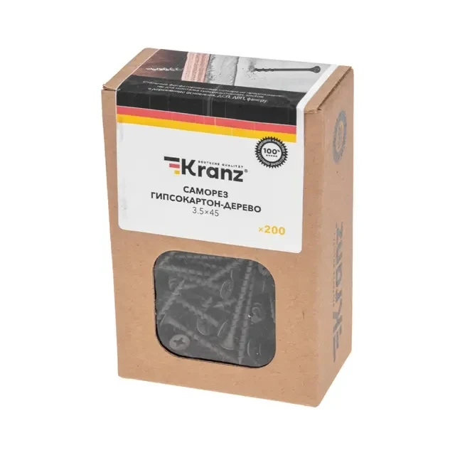 Саморез гипсокартон-дерево 3,5х45 мм, короб (200 шт/уп) KRANZ