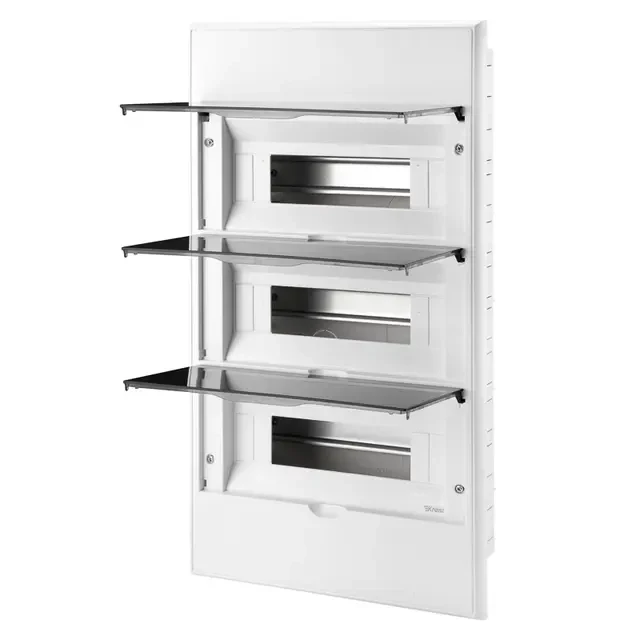 Бокс пластиковый ЩРВ-П IP41 предназначен для установки модульных устройств при распределении электроэнергии до 400 В в квартирах, офисах, жилых, муниципальных и технических помещениях. Современный дизайн позволяет устанавливать распределительный щиток в любое пространство. Корпус выполнен из надежного и долговечного материала высокого качества – ударопрочного АБС-пластика. Прозрачная дверца изготовлена из поликарбоната. Пространство внутренней части корпуса увеличено для удобного монтажа оборудования. Изделие соответствует требованиям пожарной безопасности и изготовлено из материалов, которые не поддерживают горение. Произведено в Европе в соответствии со всеми стандартами безопасности (ГОСТ 14254 - 2015 и IEC 60529:2013). В комплектацию входят: стальная DIN-рейка (для крепления на ней различных модульных устройств и принадлежностей внутри щита), шины N/PE, суппорт для шин, маркировочная лента для модулей, знак «Молния» и инструкция по установке.