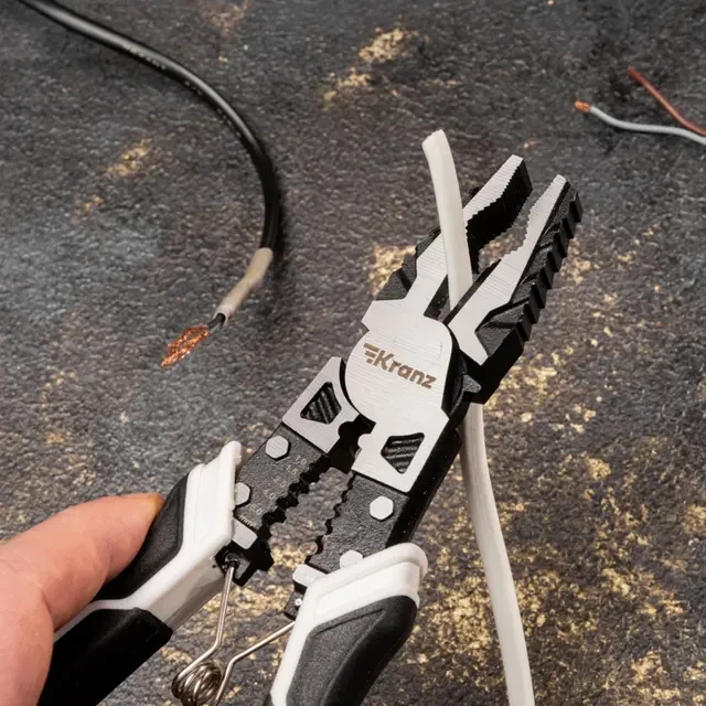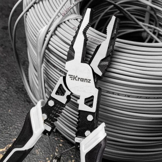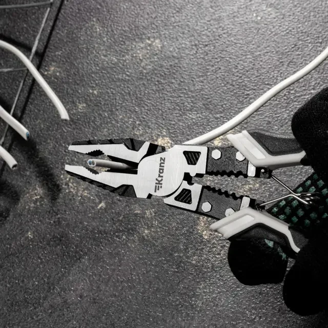 Многофункциональные универсальные плоскогубцы – это инструмент на все случаи жизни включающий в себя: плоскогубцы, бокорезы, инструмент для зачистки кабеля, инструмент для обжима клемм. Используются для ремонта автомобилей, мотоциклов, механизмов и т.д. Применяются для монтажных работ, а также в быту. Плоскогубцы изготовлены из высококачественной хромованадиевой стали (Cr-V). Оснащены износостойкими двухкомпонентными анатомическими рукоятками, которые не скользят в руках. Тип рукояток – японский. Инструмент обладает отличной режущей способностью, подходит для резки/зачистки пластика, медных и мягких проводов. Плоскогубцы подходят для зачистки кабеля от 1 мм² до 4 мм².