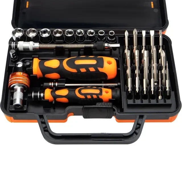 Набор отверток для точных работ KRANZ отлично подходит для ремонта телефонов, компьютеров, приемников и многих популярных приборов, которые используются в быту. Выполнен из высококачественной хромованадиевой стали CR-V с высокой устойчивостью к коррозии и образованию ржавчины. Точно подобранные по характеристикам магнитные насадки отлично подходят для профессионального ремонта и для мелких бытовых работ. В наборе 31 предмет: Удлиненные биты (45 мм): PH1.0, PH1.5, SL2.0, Pentable P2, P5, T2 Удлиненные биты (60 мм): PH1, PH2, SL5, SL6, T20, T25, H5.0, H6.0, PZ1, PZ2 Головки: M5, M6, M7, M8, M9, M10, M11, M12, M13 Переходник Удлинитель Гибкий удлинитель Рукоятка*2 Рукоятка реверсивная с изменением угла кручения Посадка бит: 1/8