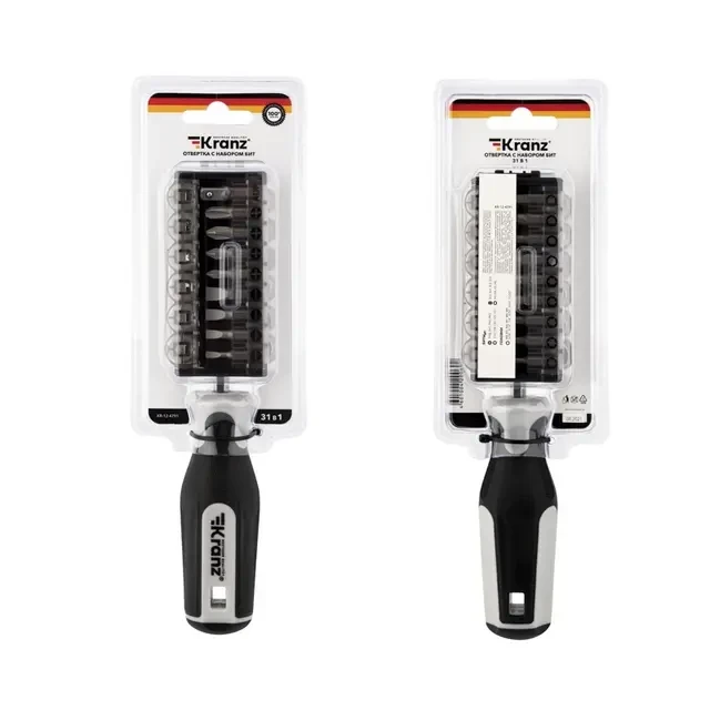 Набор отверток KRANZ применяется для монтажа и демонтажа винтов, шурупов, саморезов и других крепежных изделий. Биты набора выполнены из качественной хромованадиевой стали. Твердость бит составляет 51-56 HRC. Магнитный держатель обеспечивает быструю замену и надежную фиксацию насадок. Набор поставляется в кейсе, удобен в использовании и транспортировке, содержит 31 предмет: Шестигранная звезда: T10, T15, T20, T25, T27 Шестигранник: H3, H4, H5, H6 Крестовая: PH0, PH1, PH2, PH3 Шлицевая: SL3, SL4, SL5, SL6 Адаптер Головки: M4, M5, M6, M7, M8, M9, 5/32", 3/16", 1/4", 9/32", 5/16", 11/32"