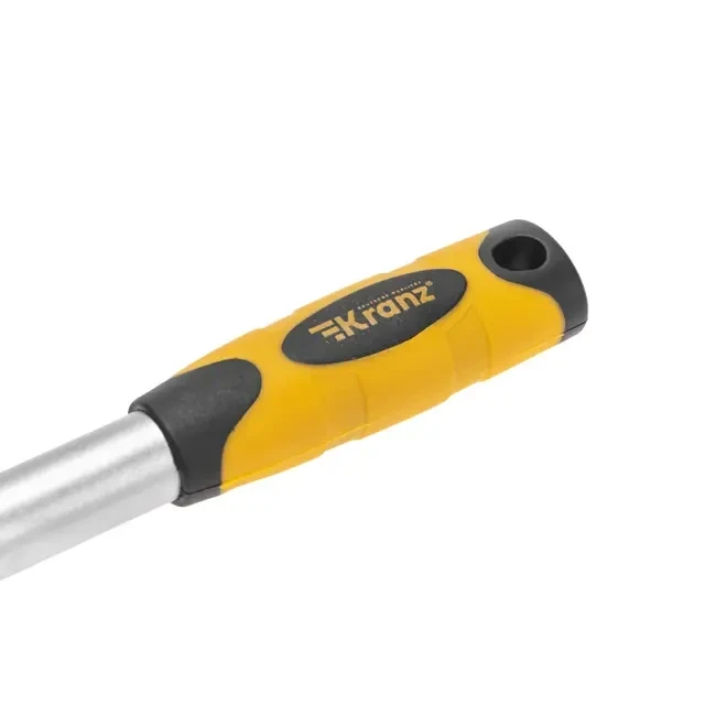 Телескопический хромированный трещоточный ключ KRANZ предназначен для монтажных работ с резьбовыми соединениями. Инструмент оснащен присоединительным квадратом размером 1/4 дюйма, что позволяет подключать различные насадки и головки в зависимости от потребности. Телескопическая рукоятка обеспечивает легкую регулировку длины в диапазоне от 162 до 210 мм, что делает ключ удобным для работы в разных условиях. Механизм фиксации гарантирует надежную блокировку рукоятки на требуемой длине. Двухкомпонентная рукоятка создает комфортное и надежное удержание в руке, что позволяет эффективно передавать усилие и контролировать инструмент во время работы. Изделие выполнено из высококачественной стали CrV. Хромированная отделка придает инструменту привлекательный внешний вид, а также защищает поверхность от коррозии и износа.